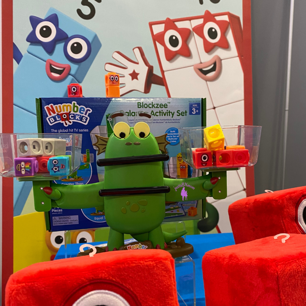 Blockzee Balance Activity Set – You read about this in our Spring Fling recap. We are excited to share that Blockzee has entered the building. Let me tell you how we love it even more now that we have it at home. Math is always more fun with manipulatives. Add Number Blocks as the manipulatives and you can bring episodes to life while learning. This set comes with 10 double-sided activity cards and a dry-erase marker that can be used endlessly. I like using the cards with HOPS because she can hold them and she gets excited to see her Number Blocks friends. Knowing which way the symbols faced took JustaBXgirl some time when she was learning greater than, less than, and equal to. This set brings the lessons to life. The set also comes with 61 Mathlink Cubes which help us out when creating fractions.